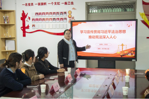 党课上,马克思主义学院副院长葛蕾同志以“学习宣传贯彻习近平法治思想,推动宪法深入人心”为主题讲授专题微党课。微党课以“宪法是国家的根本大法、治国安邦的总章程”为切入点,从精准把握党的二十届四中全会对全面依法治国作出的新部署新要求;深刻领会中央全面依法治国工作会议的核心精神;统筹推进党的二十届四中全会和中央全面依法治国工作会议精神一体贯彻落实;党员干部带头尊崇执行宪法、推动宪法精神落地生根的实践要求四个维度展开宣讲,层层递进、逻辑清晰地引导校企党员深化法治认知。