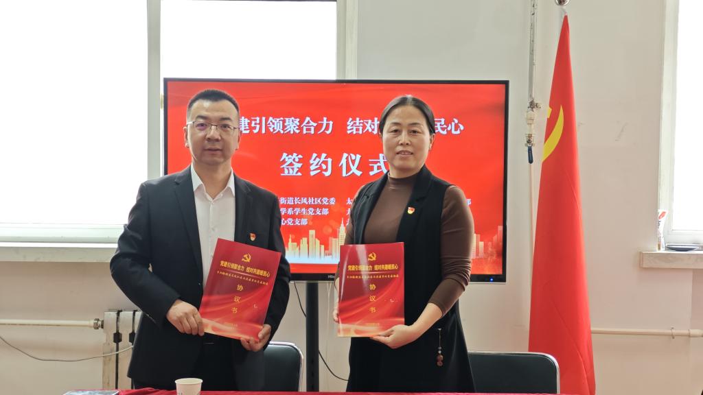 签约仪式上,药学系党总支学生党支部与长风社区党委围绕组织共建、资源共享、活动共办、服务共推等内容展开深入交流,就后续常态化开展党建活动、志愿服务等方面达成共识。双方郑重签署党建联建共建协议,标志着双方党建合作正式迈入常态化、制度化、规范化新阶段,为进一步整合校社资源、开展志愿服务、精准服务居民群众奠定了坚实基础。
