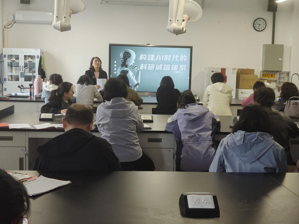 为加强中药系教师的科研诚信意识,适应人工智能时代科研工作的新挑战,中药系于2025年11月5日在系例会上开展了“科研诚信与AI伦理”主题学习活动。本次学习由中药系主任徐丽霞主持,旨在引导教师正确认识AI技术对学术研究带来的影响,明确科研诚信底线,确保学术研究的真实性和可靠性。