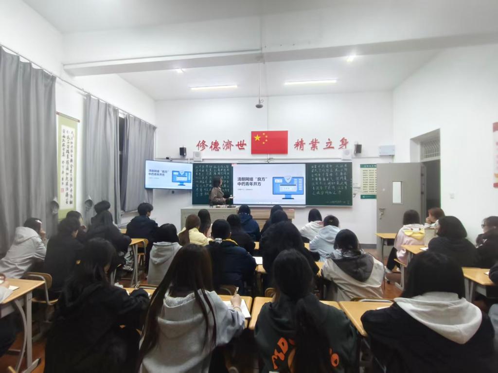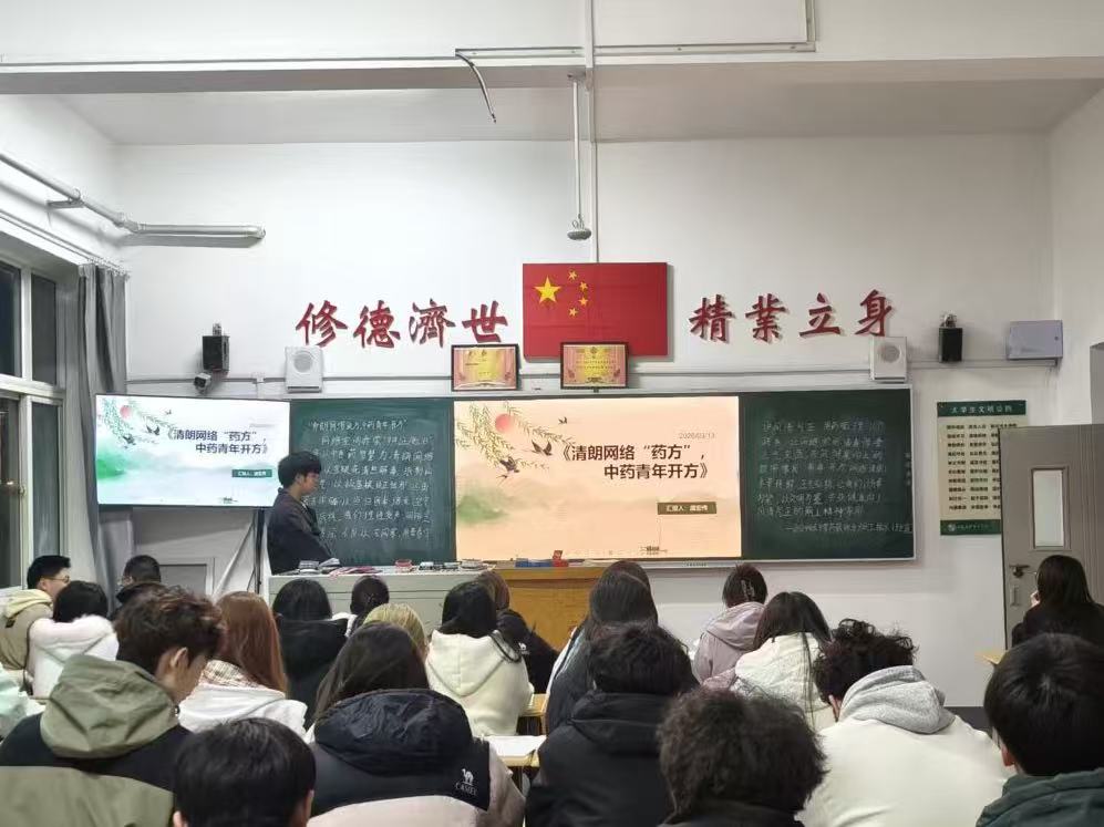 为了深入推进网络文明建设,引导青年学子树立正确网络价值观,结合中医药专业特色,将传统智慧融入网络空间治理,我系于3月15日晚自习组织各班级开展“清朗网络‘药方’,中药青年开方”主题班会。