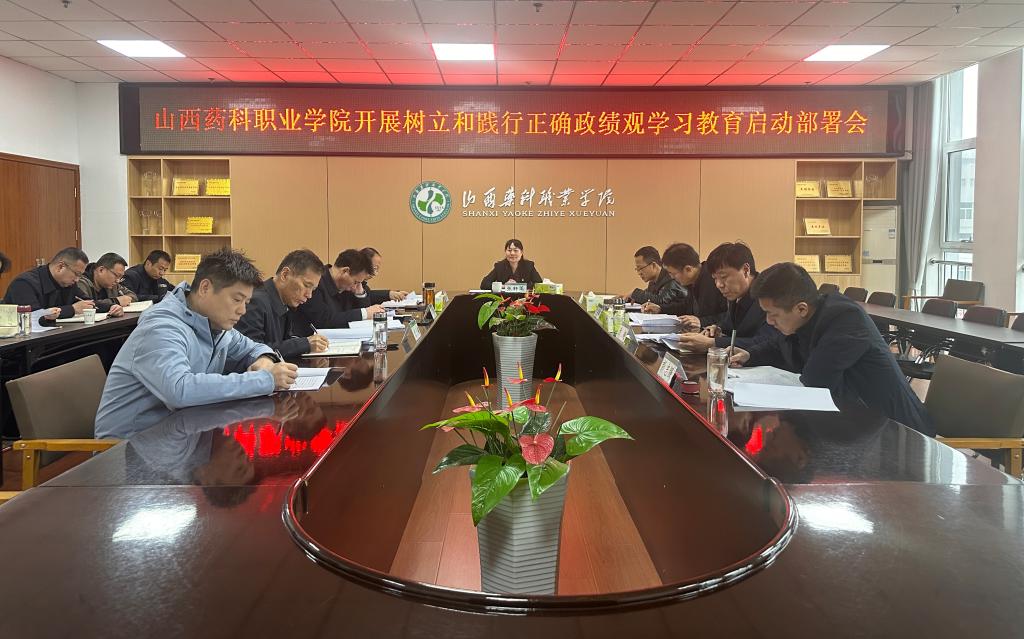 会议指出,开展树立和践行正确政绩观学习教育是学院今年党的建设的重要任务,更是锚定高质量发展、推动学院第二轮“双高校”建设再上新台阶的重要契机,各基层党组织要把开展学习教育作为重要政治任务,扛起主体责任,细化工作安排,精心组织实施,以高度的政治自觉、思想自觉和行动自觉,扎实开展好这次学习教育,以正确政绩观引领党员、干部干事创业导向,共同谱写山西药科职业学院高质量发展新篇章。