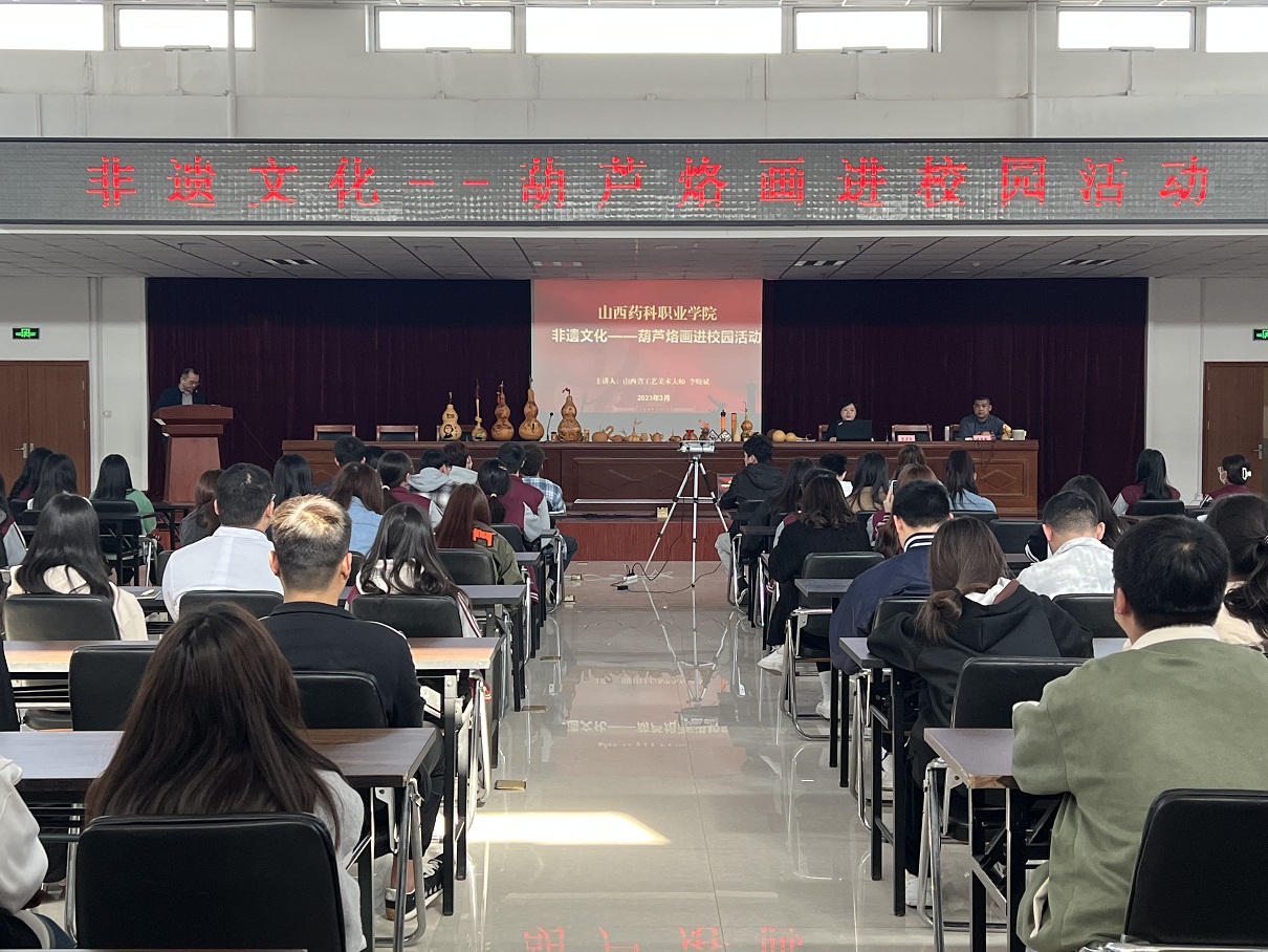 为切实做好学院美育研究实践工作,丰富学生的第二课堂,弘扬中华优秀传统文化,3月29日下午,“非遗文化——葫芦烙画”走进校园。学院邀请山西省工艺美术大师李晓斌先生和吕梁市非物质文化遗产传承人陈建红女士走进校园开展了“非遗文化——葫芦烙画”活动。130余名学生代表参加活动。活动由美育研究实践工作室牵头单位、基础部部长徐荣辉主持。