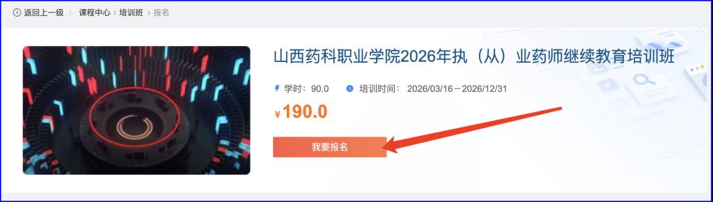 方法一:登录“山西省执业药师继续教育管理平台”(https://www.cnslpa.com/login)→登录或新用户注册→点击“继续教育报名”→选择山西药科职业学院报名,完成学习。