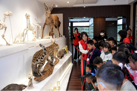 活动伊始,恒大小学全体师生在我院综合楼前集体合影,定格美好瞬间。随后,师生分为四组,在我院专业教师与学生志愿者全程引导下,同步开展参观与体验项目。在中药调剂技艺传承基地,大家观摩戥称抓药、称量、分包技艺,学习中药调剂规范与用药原则,感受中医药“精准、严谨、传承”的职业精神;综合楼二层,中医药主题美术作品布贴画创意十足,师生在笔墨与手工间品味中药美学;中药标本馆内,植物药、动物药、矿物药等标本琳琅满目,“十大晋药”与特色中成药展示,让孩子们直观认识中药材性状、功效与文化内涵。