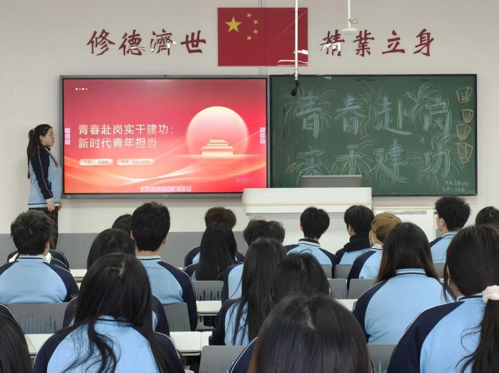 团课伊始,团员代表结合典型案例,解读了新时代青年在职业发展中应秉持的责任与担当,强调“实干是青春最亮丽的底色”。随后,优秀校友代表通过线上连线分享了自身职场成长经历,从基层岗位历练到专业能力提升,用真实故事诠释了青年如何在岗位上践行初心使命。互动环节中,同学们围绕“职业规划与社会责任”展开热烈讨论,纷纷表示要以榜样为镜,锤炼过硬本领。