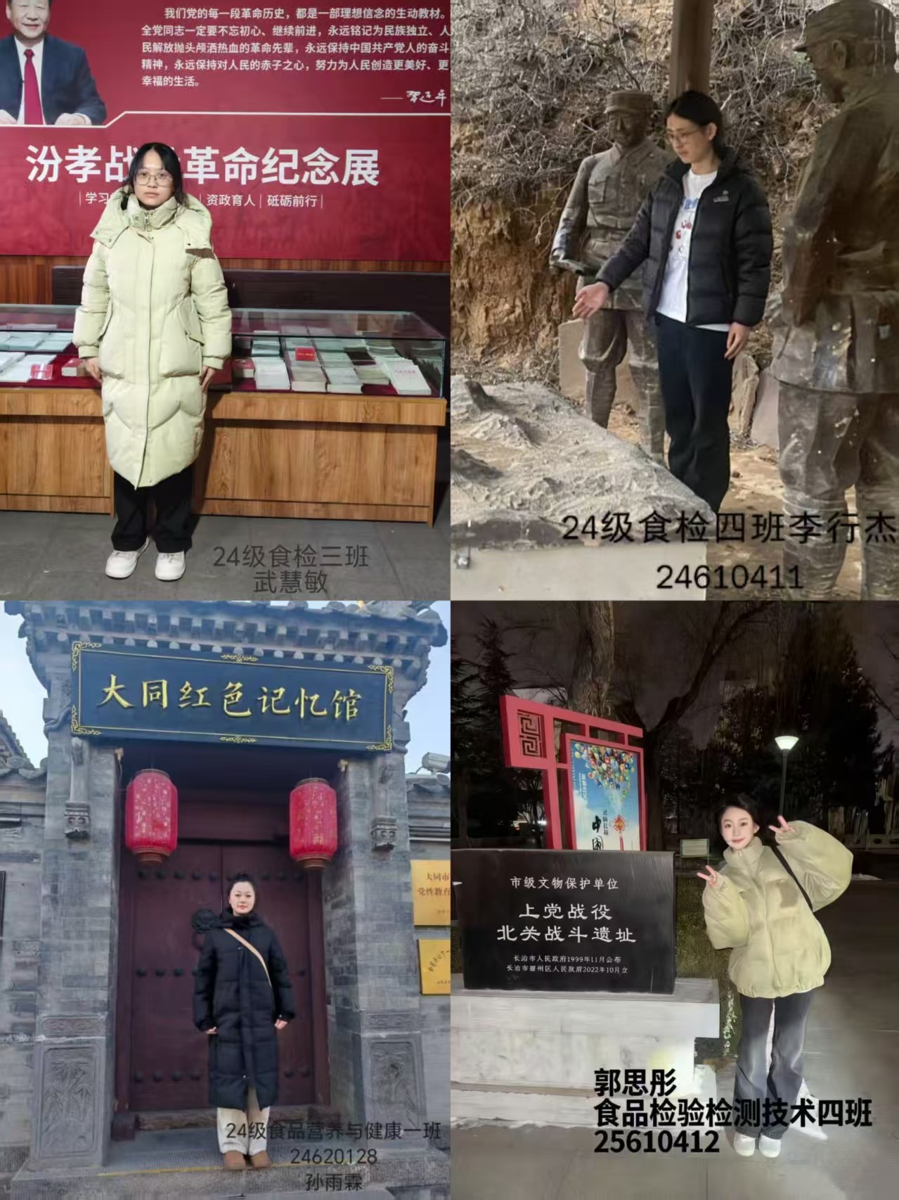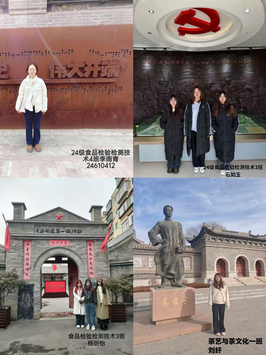 为深入学习贯彻习近平总书记关于传承红色基因、弘扬革命精神的重要论述,引导青年学子从红色历史中汲取智慧力量,食品系学子于寒假期间开展“追寻红色印记,传承奋斗精神”主题打卡活动。大家分赴各地红色景点,在实地探访中回望峥嵘岁月,在精神洗礼中坚定理想信念。
