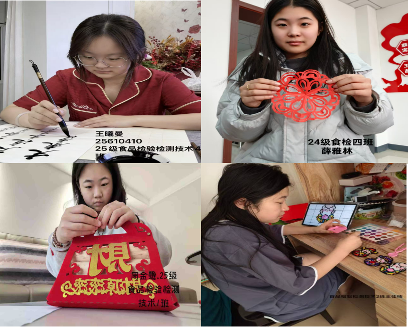 活动期间,食品系学子立足家乡实际,深入特色街区、文化场馆,实地探访家乡的自然风光、人文底蕴与发展新貌,并通过绘画、书法、舞蹈、剪纸及参观等多种形式,在艺术与文化的浸润中陶冶情操、涵养品格。无论是挥毫泼墨时的专注沉静,起舞律动间的情绪表达,还是指尖运剪下的匠心独运,每一种体验都是心灵的滋养与审美的提升。这一过程不仅丰富了寒假期间的文化生活,更让学子在感知美、理解美、创造美的过程中,逐步形成积极健康的审美情趣与人文情怀,在潜移默化中打下温暖而坚实的人生底色。