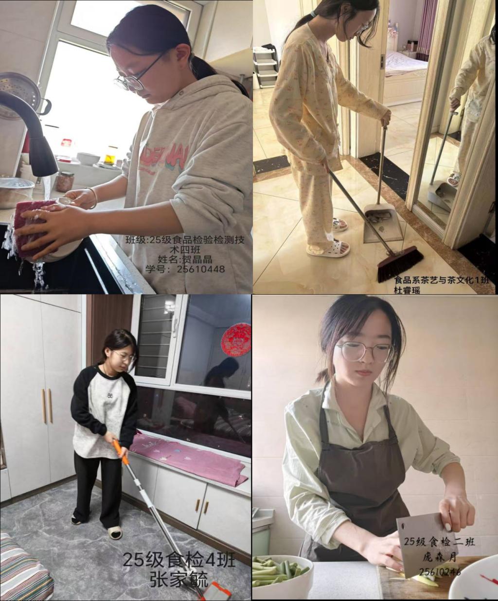 此次劳育实践活动,让食品系学子走出书本、走进生活,将劳动教育从课堂延伸至家庭。同学们在亲身劳动中锻炼了动手能力,体会到父母持家的辛劳,更懂得了劳动创造美好生活的深刻道理。未来,食品系将持续深化劳动教育,引导学子以劳树德、以劳增智、以劳强体,让劳动精神成为青春成长的鲜明底色。