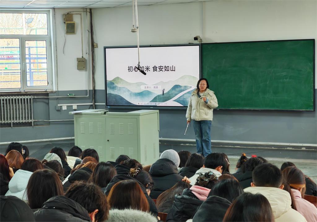 12月24日,山西药科职业学院食品系党员教师高扬面向2025级农产品加工与质量检测(三二分段)班及食品营养与检测1班学生,组织开展了一堂深刻而生动的专题党课。本次党课以"初心如米 食安如山——食品安全的政治意义与职业使命"为主题,紧密围绕食品安全的民生属性、政治内涵与职业责任展开讲解,引导学生深刻认识食品安全的极端重要性,筑牢专业初心与使命担当。