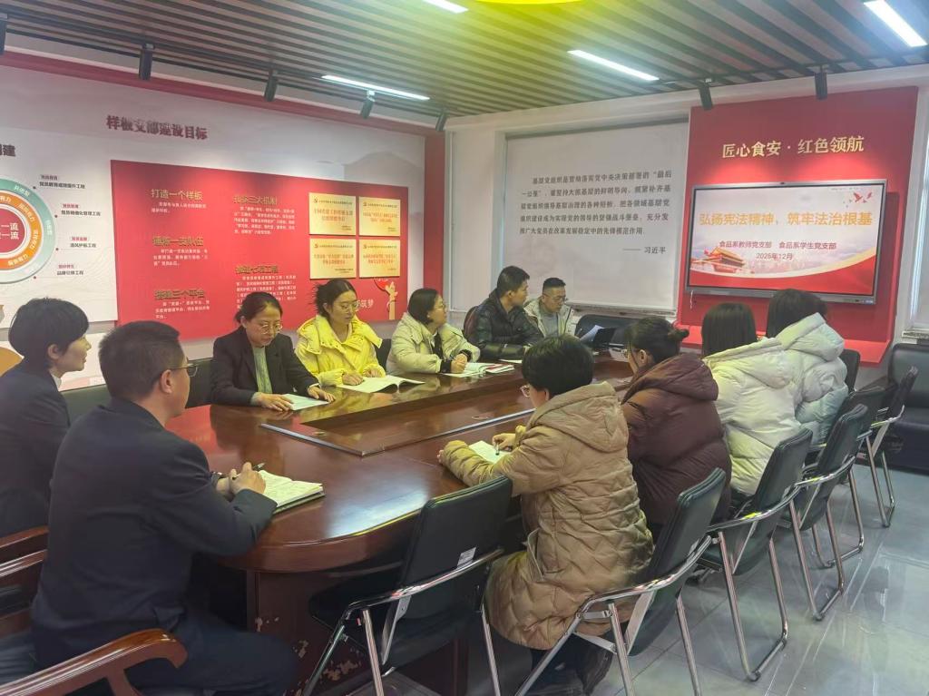 为深入贯彻落实2025年全国“宪法宣传周”工作部署,切实增强党员教师法治意识和依法履职能力,12月3日,食品系党总支教师党支部联合学生党支部教师开展“弘扬宪法精神,筑牢法治根基”主题党日活动。