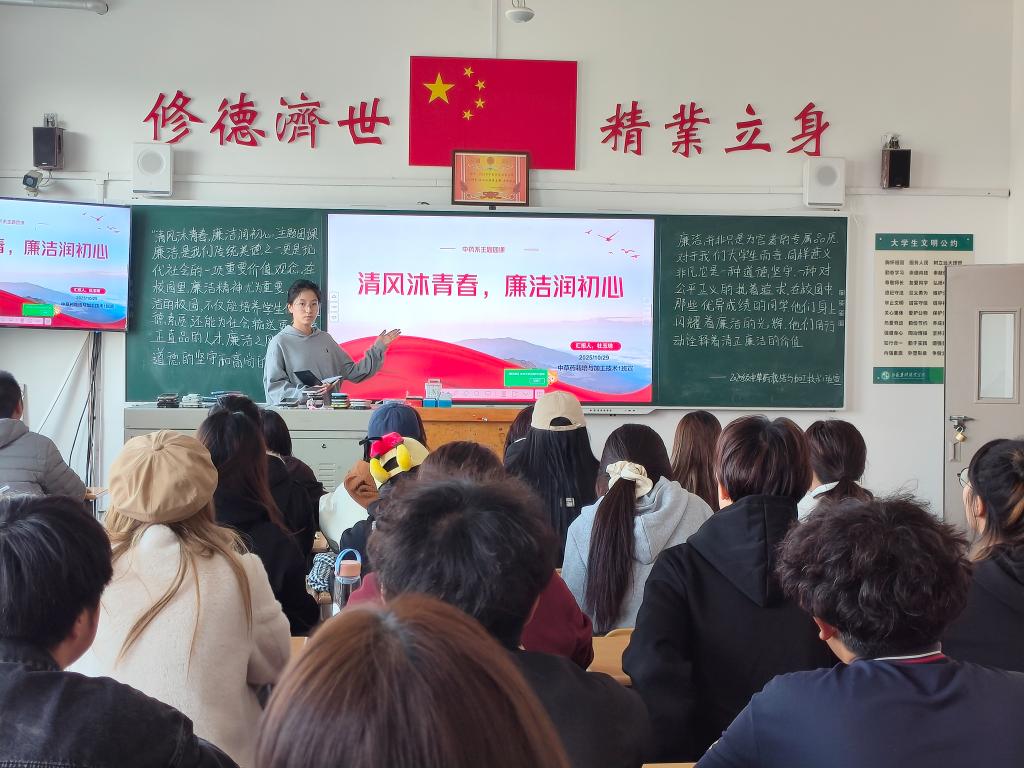 药学系分团委各班团支部书记通过视频、PPT等形式向同学们阐释了廉洁教育的意义,指出廉洁文化作为中华民族传统美德,对青年学生树立正确的价值观具有重要的指导意义,并通过剖析校园廉洁典型案例,聚焦诚信考试、杜绝抄袭、反对铺张浪费等具体场景,引导同学们将廉洁理念内化于心、外化于行,共同营造风清气正的校园生态。
