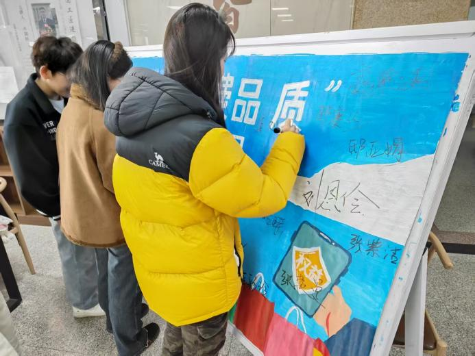 现场特别设置“提升消费品质”签名承诺墙,吸引众多同学驻足签名。大家以签名为誓,承诺主动学习消费维权知识、自觉抵制消费陷阱,同时传递“理性消费、正确维权”的理念,营造了人人关注消费安全的校园氛围。