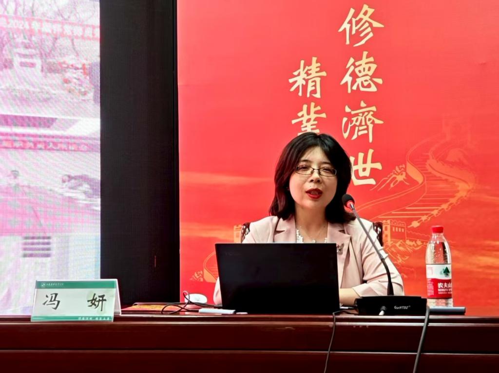 9月11日下午,我院2025年辅导员素质能力提升专题培训第五场讲座在综合楼报告厅顺利开展。本次培训特邀太原理工大学马克思主义学院团委书记兼学工办主任冯妍担任主讲,她以题为《高校辅导员名师工作室建设的实践与思考》进行专题授课。