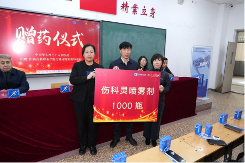 12月10日下午,杭州中美华东制药有限公司与山西仁人和医药有限公司校企联合捐赠仪式在我院东教学楼二层二阶教室顺利举行。两家企业向我院慷慨捐赠了一批其知名产品——伤科灵喷雾剂,学院党委委员、副院长原超出席仪式并代表学院接受捐赠。