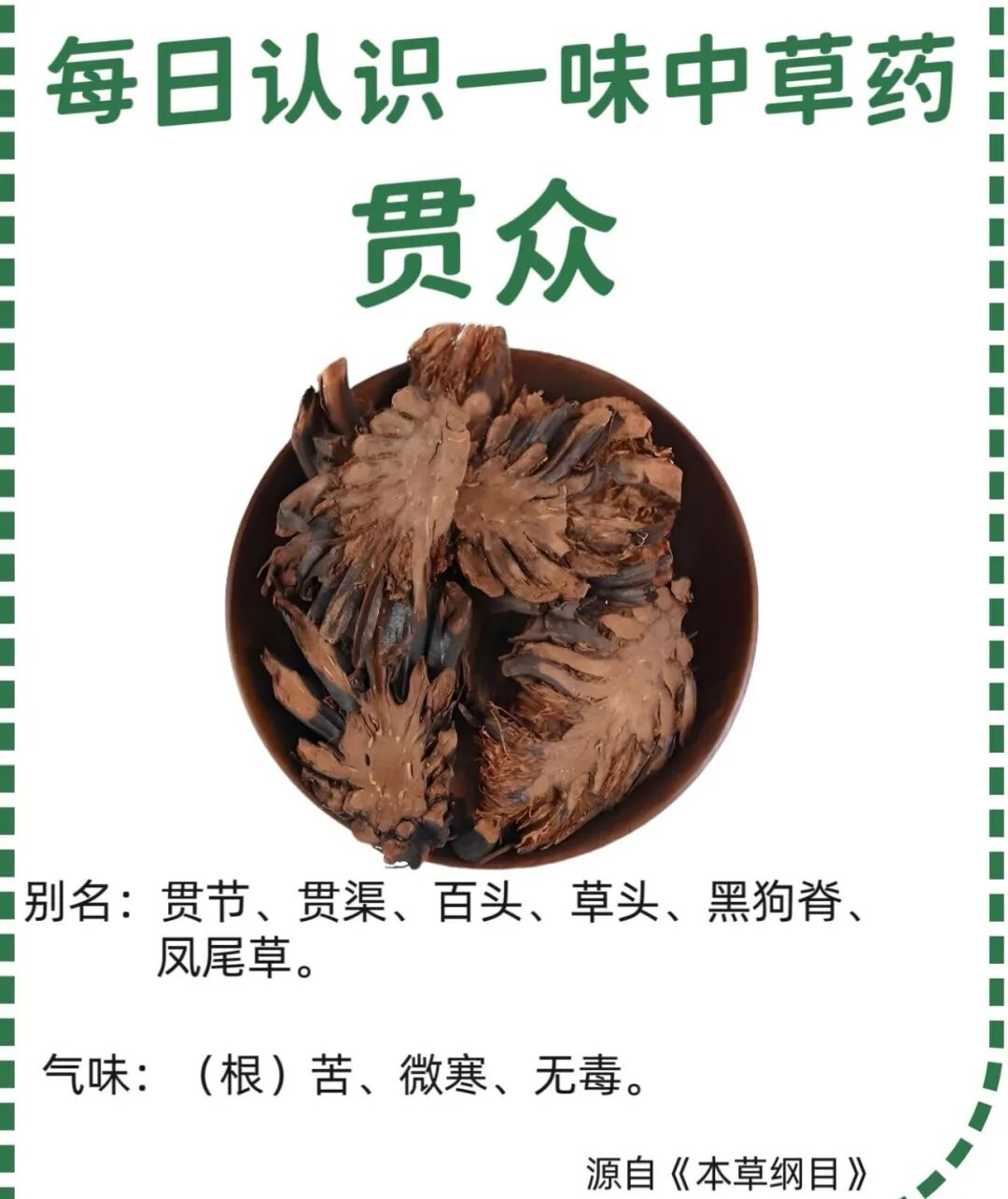 功效主治: •清热解毒:可用于防治外感风热、温毒发斑等,常作为流感、流行性脑脊髓膜炎等疾病的辅助用药。 •驱虫:对蛔虫、绦虫等肠道寄生虫有一定驱杀作用。 •止血:善于治疗血热妄行所致的吐血、衄血、便血等,尤宜于妇科崩漏出血。 用法用量:煎服,5-10g。驱虫、清热解毒宜生用;止血宜炒炭用。 使用注意: •本品有小毒,用量不宜过大。 •孕妇及脾胃虚寒者慎用。 现代研究:其主要成分包括绵马酸、黄绵马酸等,具有抗寄生虫、抗菌、抗病毒等作用,但毒性成分可能对胃肠道和神经系统有刺激,需严格遵医嘱使用。 用法用量 •内服:一般煎汤服用,用量为5-10g;也可入丸、散。 •外用:适量,研末调敷。 使用时需注意,绵马贯众有一定毒性,孕妇及体质虚弱者慎用,需在医生指导下使用。